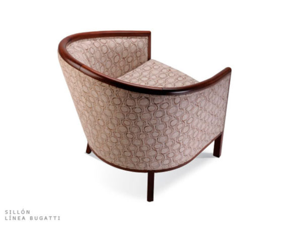 Butacón Roma con tapizado en el respaldo y asiento a elección, formado por madera guatambú.