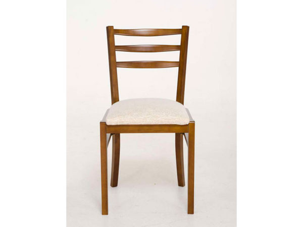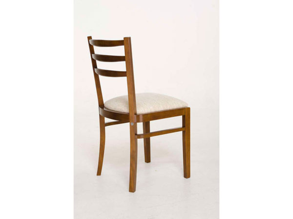 Silla betina de madera paraiso, tapizada solo en asiento, con lustre y tapizado a elección.